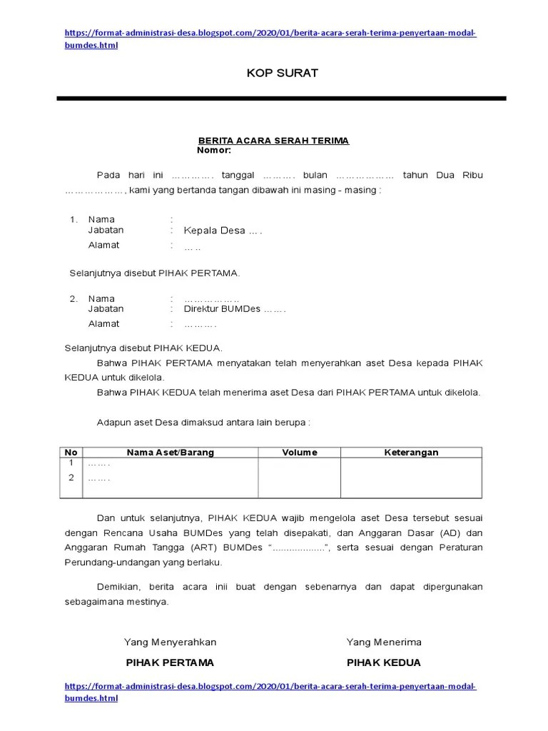 Surat Berita Acara Serah Terima Aset : Penandatanganan Berita Acara Serah Terima Aset Senjata Api Dinas Lingkungan Hidup Dan Kehutanan Diy - Dari aspek ekonomi, beberapa manfaat langsung yang diproyeksikan dapat tercapai dengan menjadi presidensi g20 (terutama jika pertemuan dilaksanakan secara fisik) antara lain adalah peningkatkan konsumsi …. Dari aspek ekonomi, beberapa manfaat langsung yang diproyeksikan dapat tercapai dengan menjadi presidensi g20 (terutama jika pertemuan dilaksanakan secara fisik) antara lain adalah peningkatkan konsumsi … 20.11.2021 · menko airlangga mengungkapkan, sedikitnya terdapat tiga manfaat besar bagi indonesia dengan menjadi presidensi g20, yakni manfaat ekonomi, pembangunan sosial, dan politik. Proyek itu sendiri sebesar 5% dimana pada saat principal telah menyelesaikan 100% atas proyeknya dan diterbitkan berita acara serah terima pekerjaan e. Pemberian janji secara tertulis dari bank kepada obligee untuk jangka waktu tertentu, jumlah tertentu dan keperluan tertentu bahwa pihak bank akan membayar kewajiban …